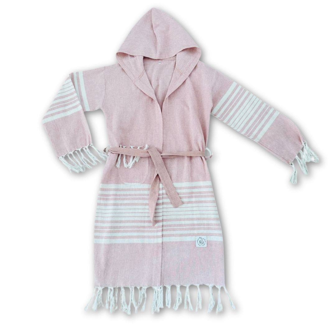 The hood, deep pockets, and playful tassel details give this gown both personality and practicality. Whether warming up after a swim, protecting shoulders from the sun, or wandering down for ice creams at sunset, this is the go-to layer for every summer adventure.